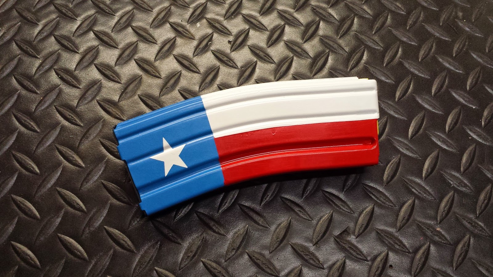 Showing our Texas pride with a mag Duracoated by our good friend, Jason Armstrong, of Hammer Down Sports Gunsmith Services. It is an awesome looking mag that we can't wait to show off at the next match. We definitely need a few more of these! Thanks, Jason!